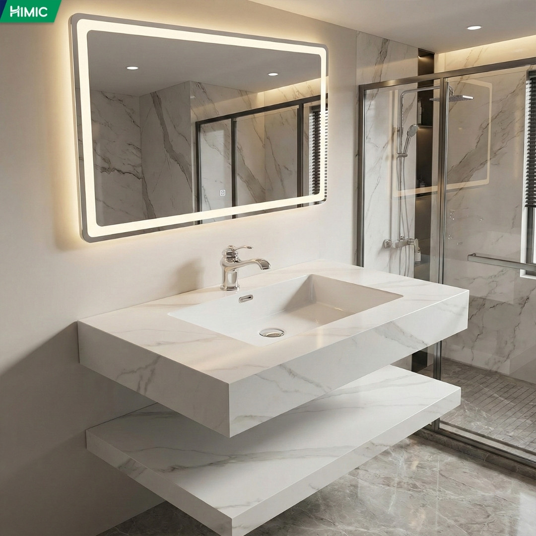 BÀN ĐÁ LAVABO HAI TẦNG KÈM GƯƠNG LED